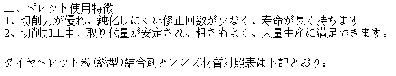 3、同じ摩耗度の硝材について、研磨加工の條件もそれぞれあります、結合剤を選択するとき、弊社の技術(shù)と相談して決めること。