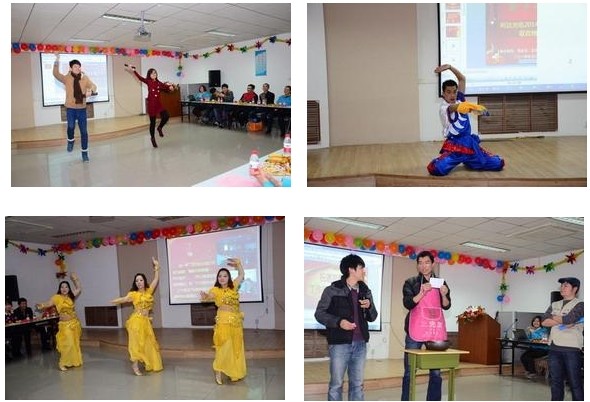 ????? 晚會(huì )現場(chǎng)雖然比較節儉,卻處處洋溢著(zhù)喜氣洋洋的和諧氛圍。晚會(huì )內容豐富多彩,包括歌曲、戲曲、舞蹈、小品、魔術(shù)、男女對唱、武術(shù)等十五個(gè)節目,給全體觀(guān)眾們帶來(lái)了一場(chǎng)美妙的視聽(tīng)盛宴。一首合唱歌曲《猜》拉開(kāi)本次晚會(huì )的帷幕;熱辣,奔放的西班牙之夜、印巴熱舞給大家帶到了異國情域;根據公司文化改編的小品《找工作》妙趣橫生,耐人尋味,迸發(fā)出積極向上的正能量;武術(shù)表演懸念頓生,豪氣沖天;歌曲《暗香》、《猜》演繹了情深意長(cháng)、溫馨浪漫的真摯情感;詩(shī)朗誦《咱們工人有力量》,節目巧妙運用詩(shī)朗誦獨特的語(yǔ)言藝術(shù),謳歌公司發(fā)生的變化和取得的輝煌成就,歌頌了利達人的敬業(yè)精神、團隊合作精神,真情流露,感人肺腑,讓在座的觀(guān)眾贊嘆;小品《胡導》以其詼諧幽默的語(yǔ)言、滑稽搞笑的到位表演的藝術(shù)表現形式更是笑爆全場(chǎng);更有郭富強表演的魔術(shù)和蔣麗的戲曲表演,讓我們領(lǐng)略了利達人別樣的激情與風(fēng)采。抽獎活動(dòng)穿插期間,將聯(lián)歡會(huì )氣氛一次次推向高潮。
