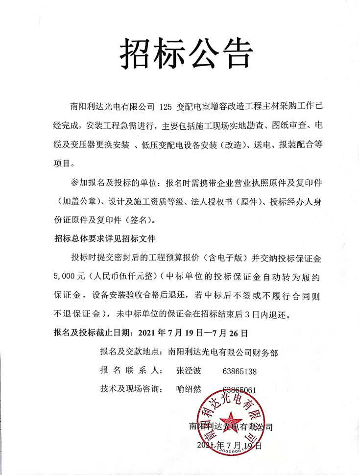- (2025-07-17)利達光電公開(kāi)招聘財務(wù)部部長(cháng)擬錄用人員公示