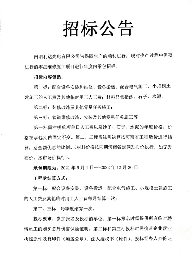 - (2022-09-29)光電新區三期廠(chǎng)房一層裝修施工的招標公告