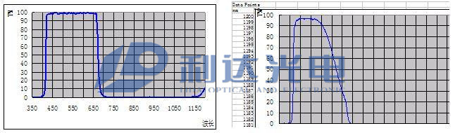 T=50%位置 短波側390(+10,-15)nm 長(cháng)波側640(+15,-10)nm