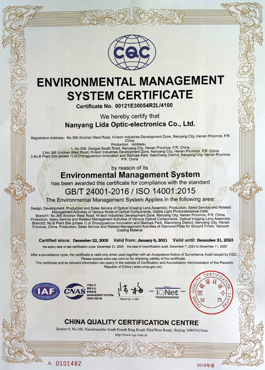 環(huán)境管理體系認證證書(shū)(英文)